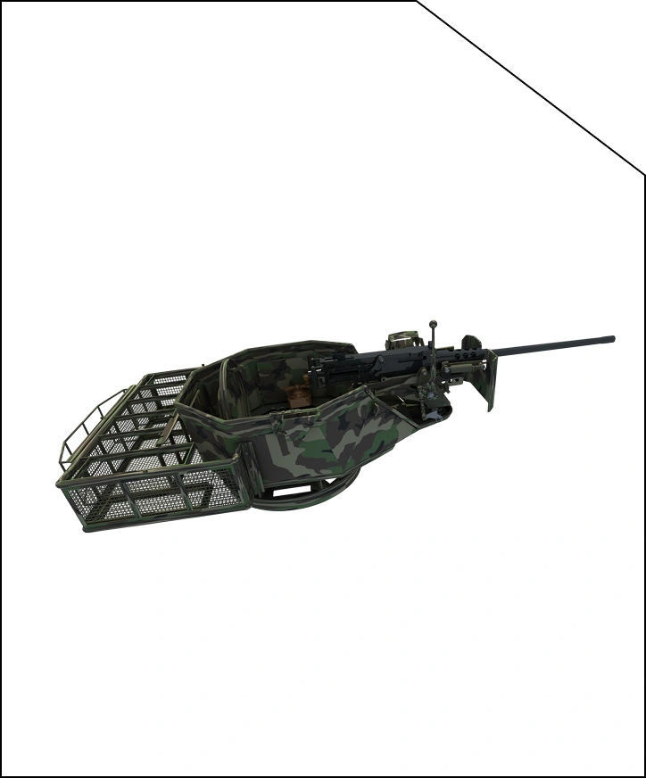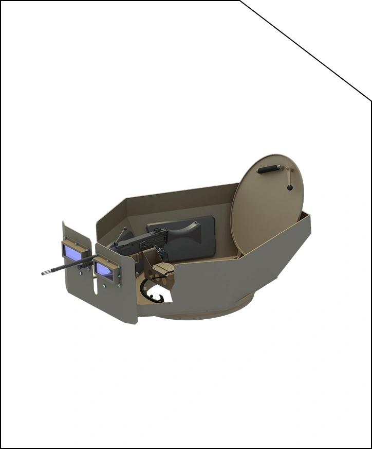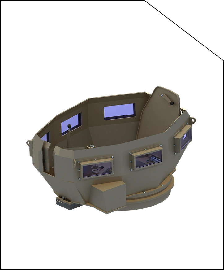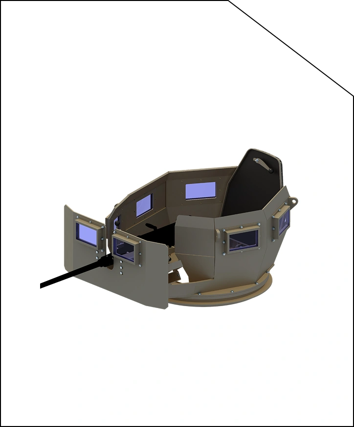 Armour Protection (Complete) with STANAG Level, as per end user requirement. Equipped with Armour Protection Glasses for visibility for the Gunner.